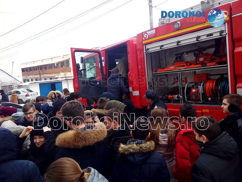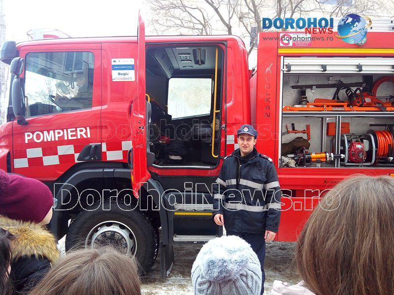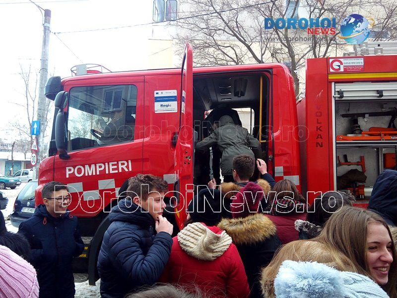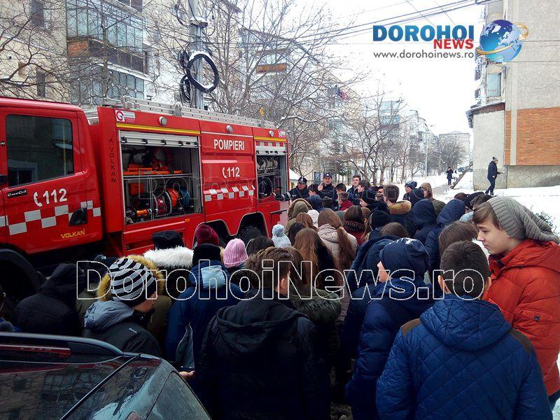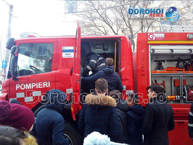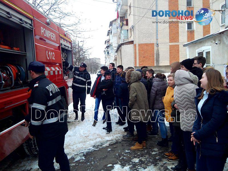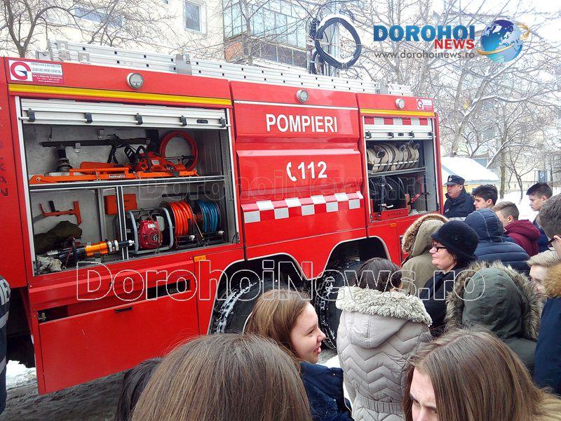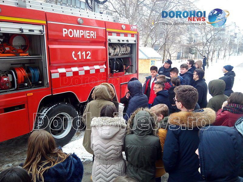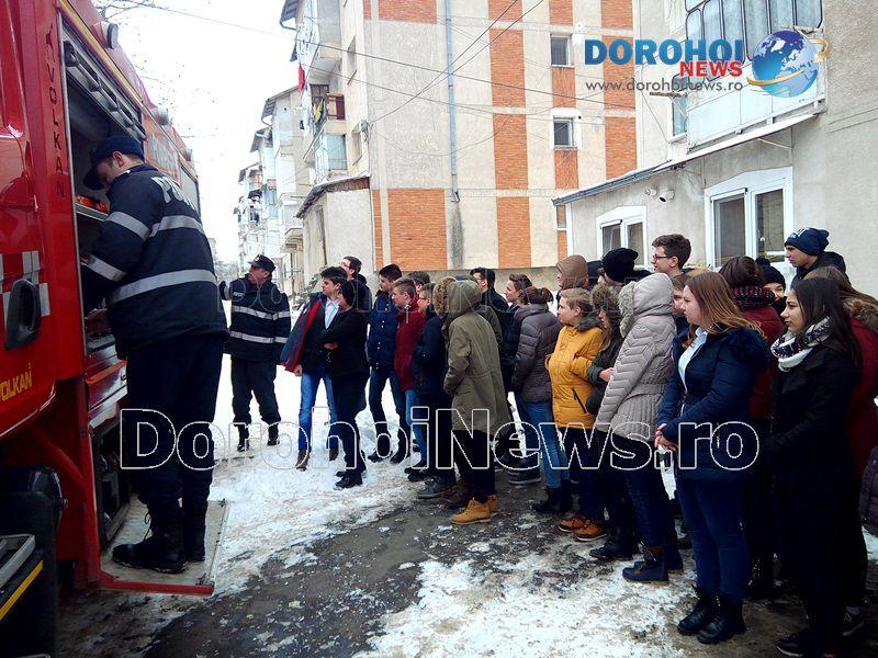 Activitatea a fost organizată de psihologul școlar în colaborare cu un echipaj de la Detașamentul de Pompieri Dorohoi și alte cadre didactice ce predau la clasele a VIII-a.