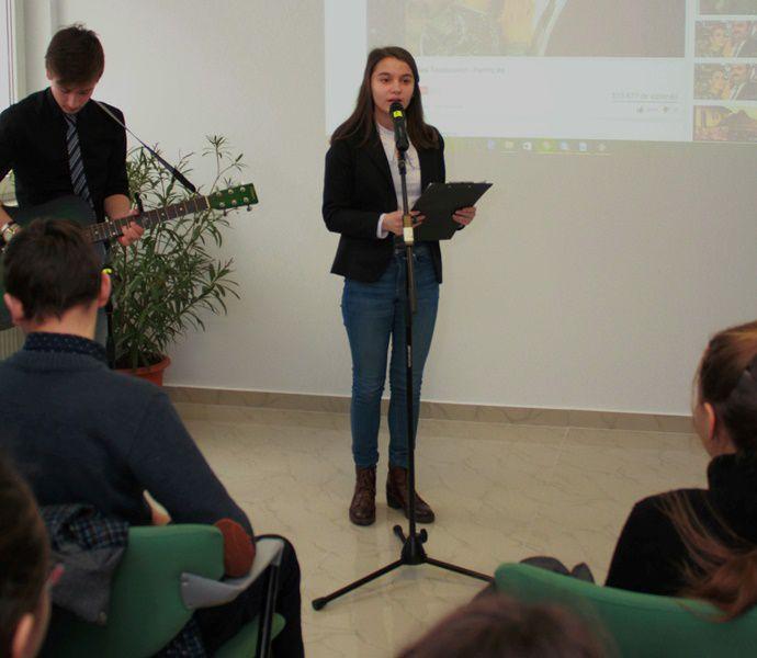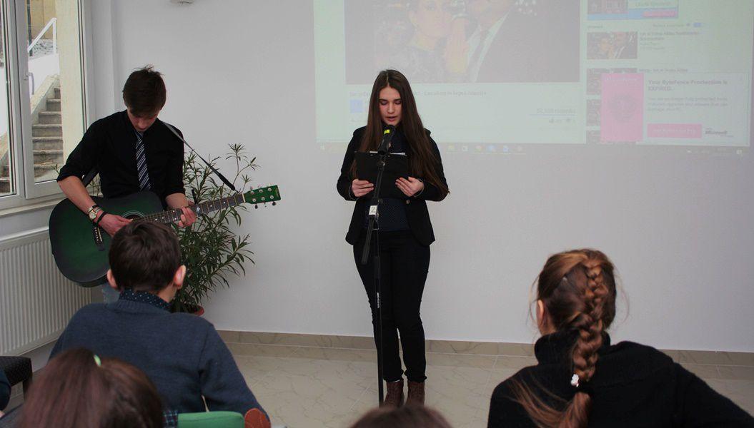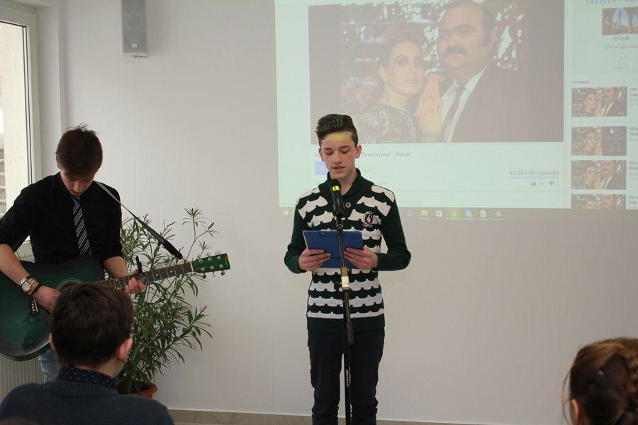 Activitatea s-a desfășurat în sala de festivități a Seminarului, unde tinerii elevi seminariști au prezentat un colaj de poezii, alese din opera lui Grigore Vieru. Acestora li s-au alăturat și două grupuri de elevi de la Școala Gimnazială nr. 1 Vârfu Câmpului și Școala Profesională „Sf. Ap. Andrei” Smârdan. (Pr. Crețu Vasile Ionuț)