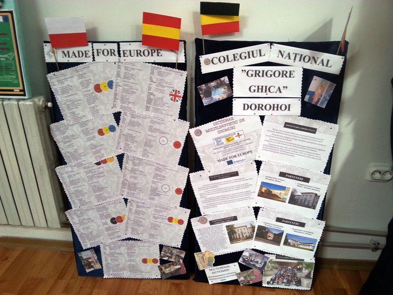 Colegiul Naţional „Grigore Ghica”, Dorohoi, a participat vineri, 24 martie 2017, la Concursul Naţional „Made for Europe”, etapa judeţeană, desfăşurat la Casa Corpului Didactic Botoşani. Concursul a avut drept scop promovarea de produse realizate în cadrul proiectelor de parteneriat din programul ERASMUS+ şi eTwinning.