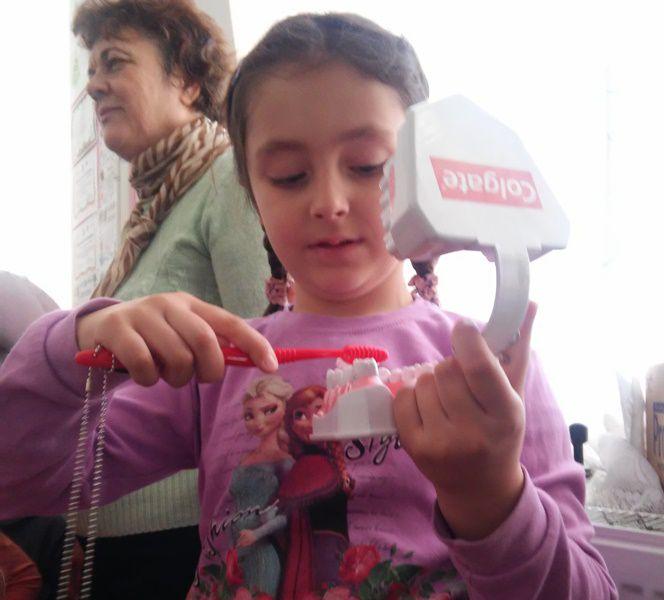 Având în vedere că educația pentru deprinderea unei rutine de îngrijire orală este esențială pentru un copil și influențează obiceiurile sale ca viitor adult și ulterior părinte elevii au învățat într-un mod plăcut pașii pe care trebuie să-i respecte în fiecare zi pentru a avea dinți sănătoși, prin intermediul filmului educational cu Dr. Măseluță și echipa sa de Supereroi ai dinților sănătoși. Ei au exersat totodată tehnica corectă de periaj dentar cu ajutorul unui model demonstrativ. „Ștampila fermecată” le-a arătat cum se spală corect pe mâini.