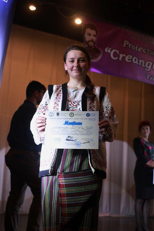 Elevul Teodor Butescu a obținut Premiul Special al juriului, pentru interpretare teatrală deosebită și pentru interpretare de muzică ușoară din repertoriul internațional. (Consilier educativ, Pr. Crețu Vasile Ionuț)
