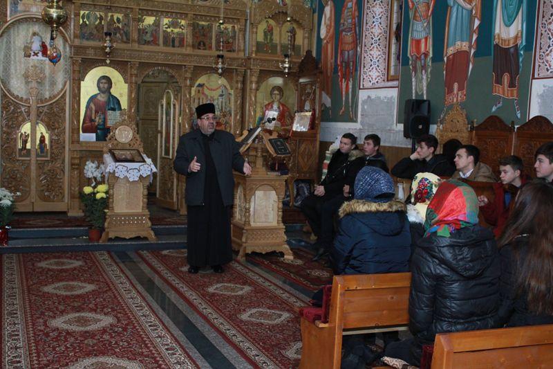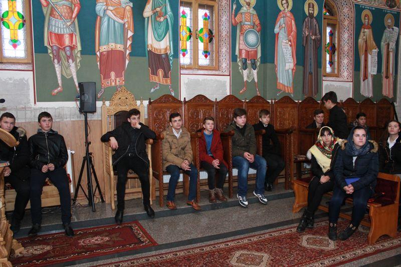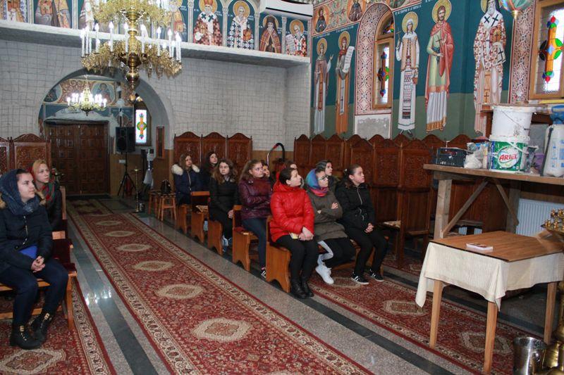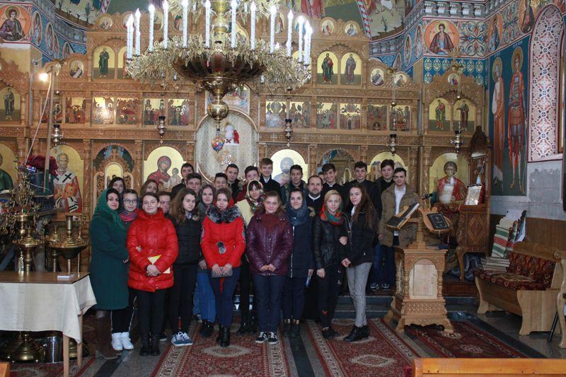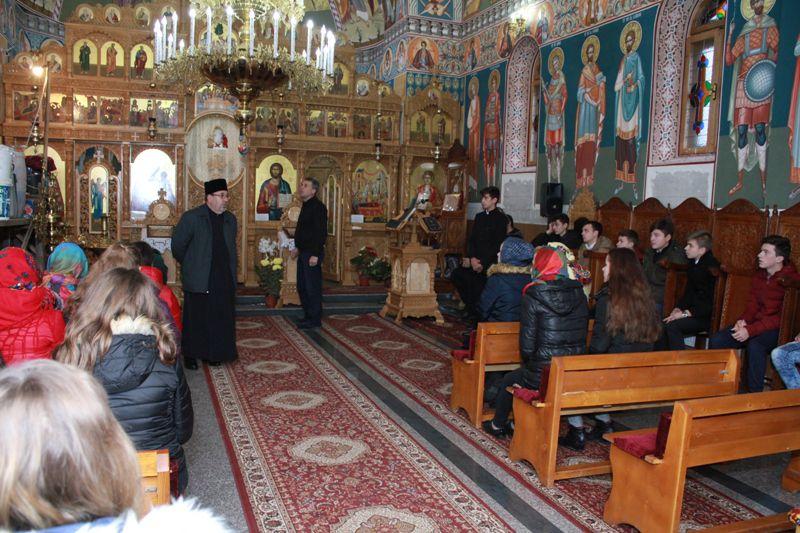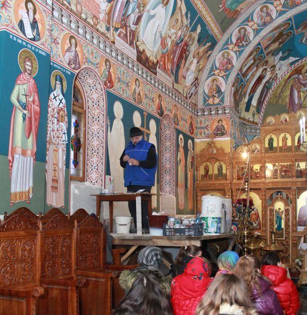 Elevii au fost întâmpinați de părintele Andrian Crețu, parohul bisericii, care le-a prezentat informații despre stadiul lucrărilor și eforturile care se depun pentru finalizarea acestora. Întrucât în prezent, la această biserică se lucrează la pictură, tinerii au avut posibilitatea să afle detalii despre iconografia ortodoxă, despre tehnica frescă, precum și despre importanța icoanei în viața creștinului. Elevii au fost impresionați de minuțiozitatea cu care pictorul pregătește suportul pentru pictură, de tehnica folosită, precum și de frumusețea picturii bisericești.