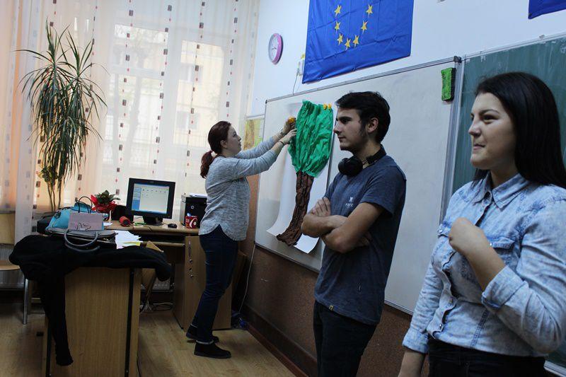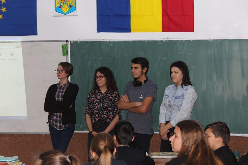 Programul a debutat cu prezentarea unei povești create și narate de elevaRenata Müler, de la liceul partener, caracterul moral al povestirii fiind interpretat prin comunicarea cu elevii gazdă. Scurtmetrajul Terror in school, difuzat la inițiativa dnei profesor Antonescu Cătălina, a accentuat faptul că violența naște doar violență și că „Un copil rău este un copil descurajat” (Rudolf Dreikurs), iar victima unei agresiuni repetate devine involuntar agresor. Atenția și capacitatea de receptare a filmulețului le-au fost testate elevilor prin cerința de a ordona cronologic etapele acțiunii, dar și prin adresarea de către dna profesor a unor întrebări definitorii în descifrarea mesajului transmis.