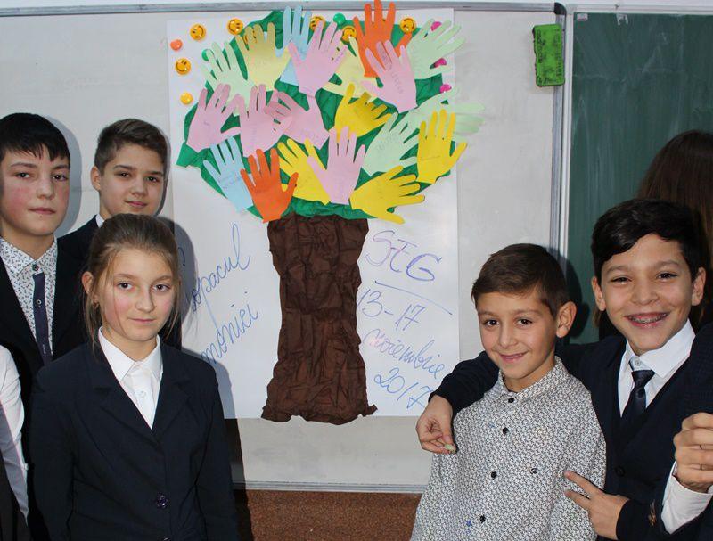 Elevele Naomi Baciu șiViviana Derscariu, de la clasa a-XII-a E, au ținut un moment artistic bazat pe o scenetă cu un puternic impact emoțional din care, în urma întrebărilor adresate de către cele două eleve, colegii mai mici au putut diferenția câteva tipuri de hărțuire existente frecvent în spațiul școlar. De asemenea, Raluca Anton și Ștefan Ciolcan, din aceeași clasă liceală, au definit explicit fenomenul bullying și, în colaborare cu ceilalți participanți, au stabilit câteva metode clare de protecție în fața unui caz de hărțuire. În final, cei mai mici au primit fișe realizate sub forma unor mânuțe pe care să-și exprime opinia asupra activității realizate, acestea fiind lipite sub ingenioasa formă a „Copacului Armoniei”, construit din carton colorat.
