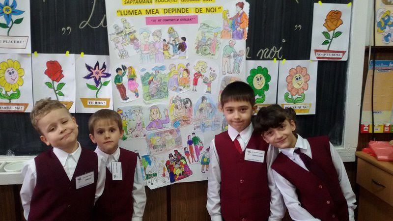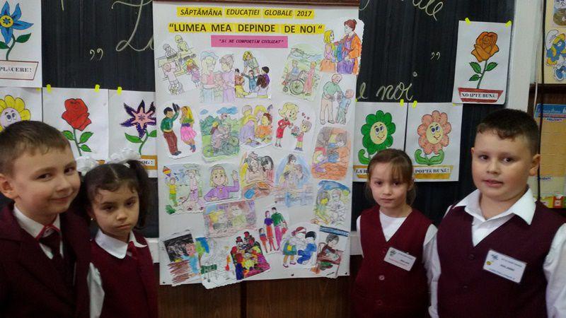 Elevii clasei pregătitoare A de la Școala Gimnazială „Mihail Kogălniceanu” - Dorohoi, sub îndrumarea înv. Dănilă Ana și elevii clasei pregătitoare B de la Școala Gimnazială „Al. I. Cuza” – Dorohoi, sub îndrumarea prof. înv. primar Groza Carmen au desfășurat, vineri, 17 noiembrie 2017, în parteneriat, activități în cadrul proiectului „Lumea mea depinde de noi” din Săptămâna Educației Globale.