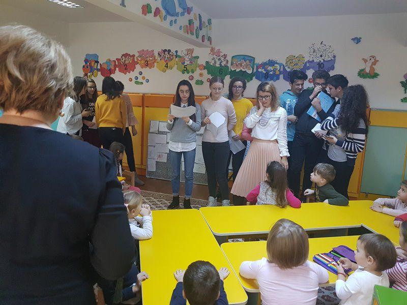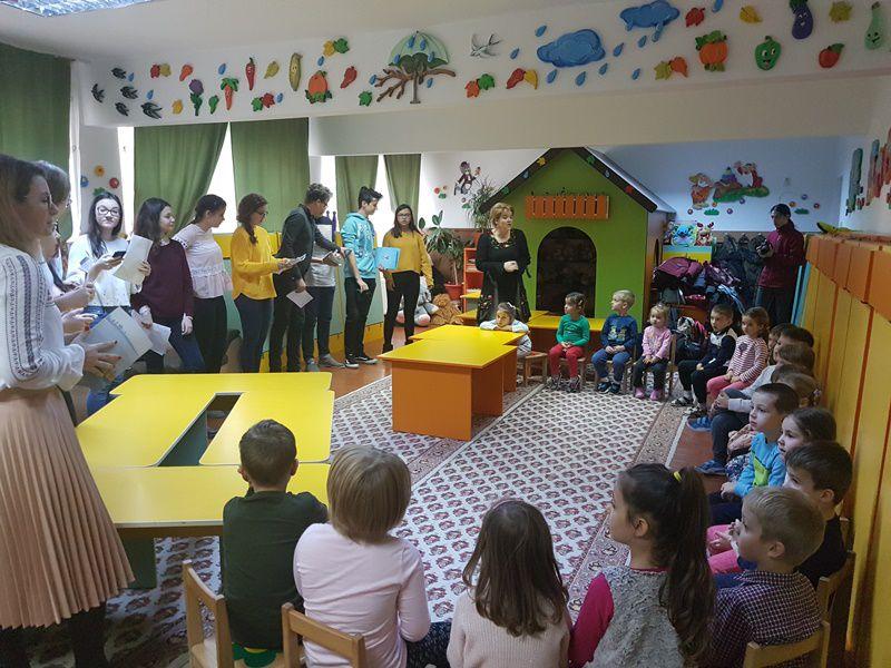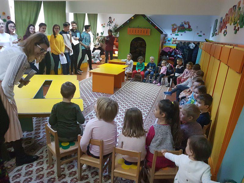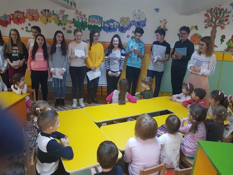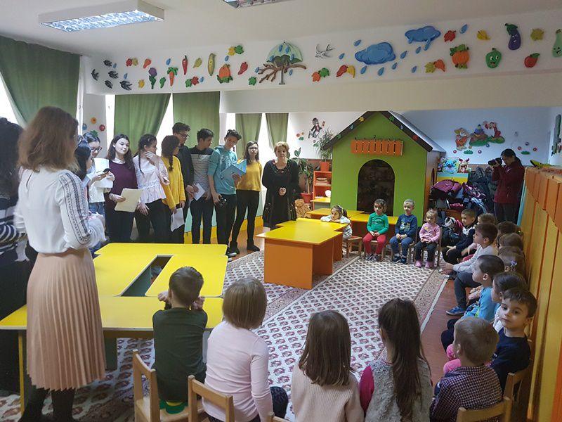 În cadrul Săptămânii Educației Globale, sub egida Proiectului „Ascultă povestea mea!” „piticii” de la Grădinița „Albă ca Zăpada” Dorohoi, sub coordonarea educatoarelor – prof. Anca Enache și Maria Enache, marți 14 noiembrie, au avut ca oaspeți elevii clasei a VIII-a, membri ai Cercului de lectură „Unde fugim de-acasă” de la Școala Gimnazială Nr. 7 Botoșani, sub directa îndrumare a doamnei profesor Loredana – Nicoleta Carcea.