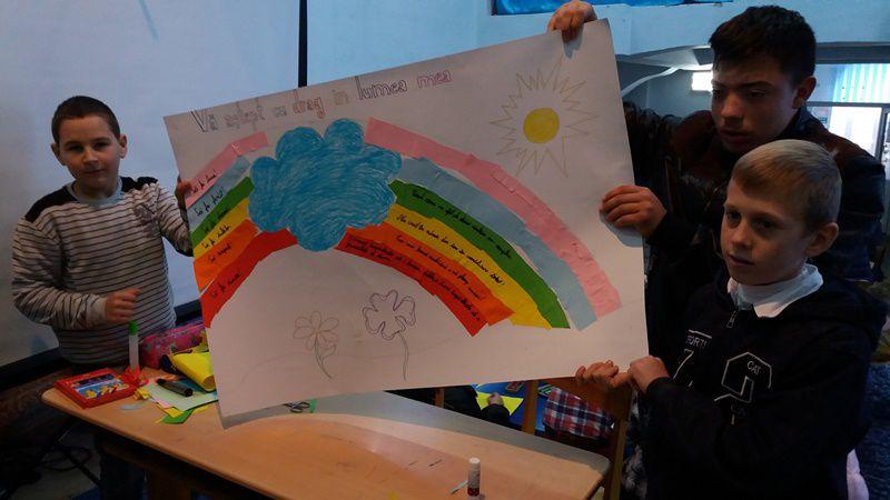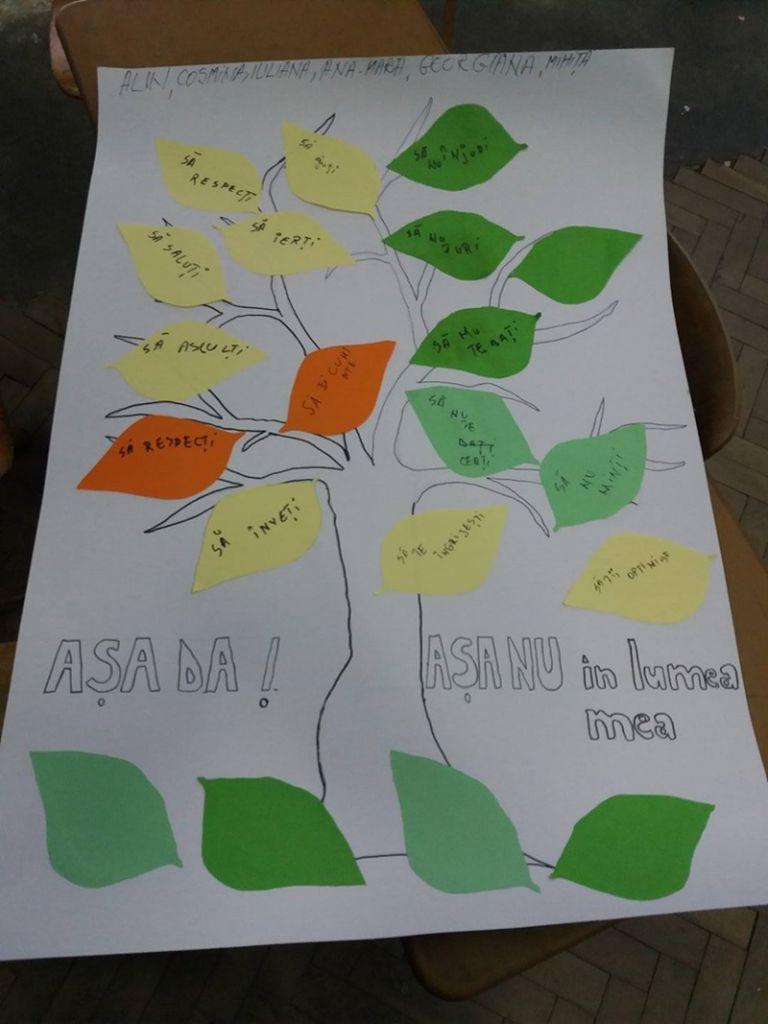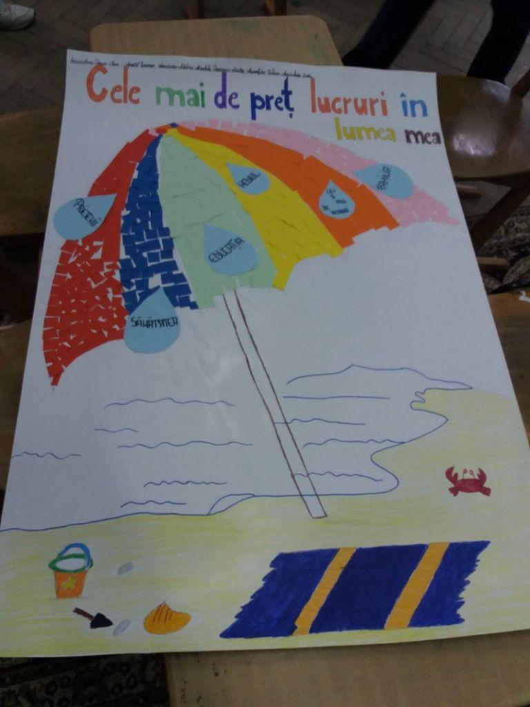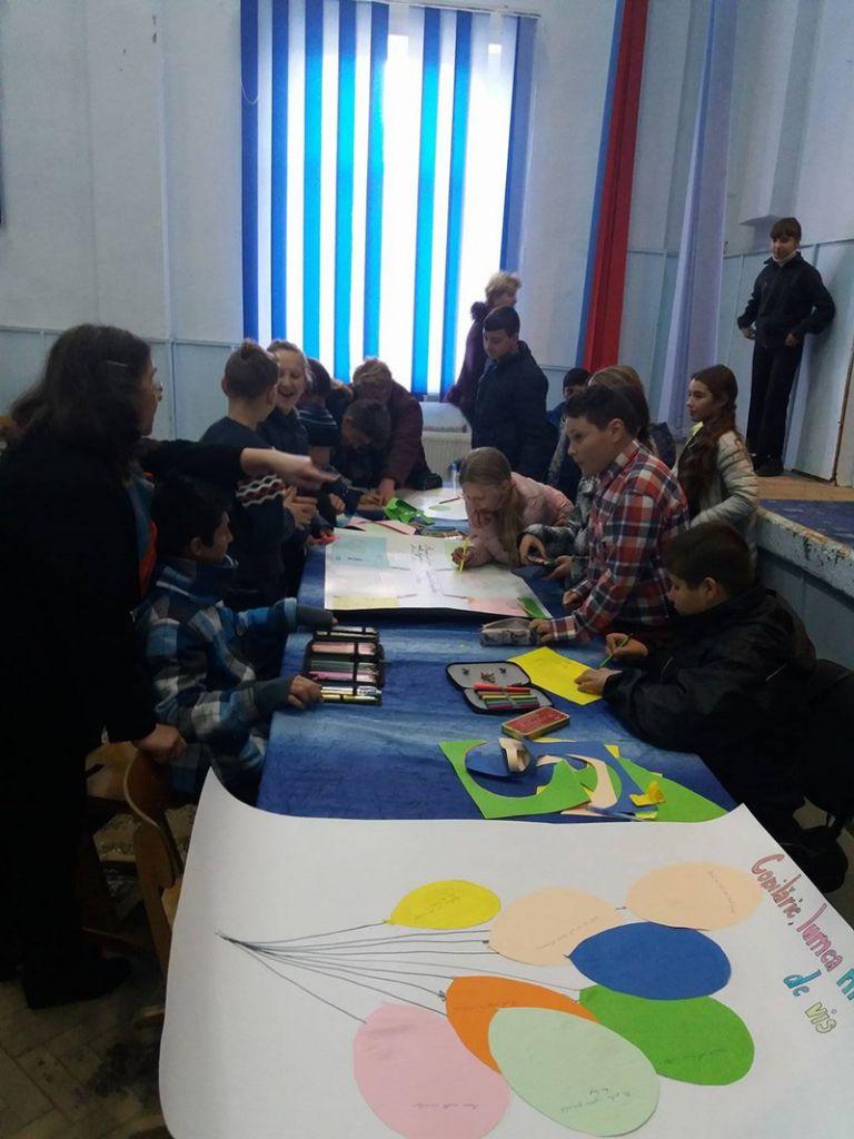 3.„Lumea noastră-i desenată” – în cadrul acestei activităţi elevii de le cele trei şcoli impicate în proiect au fost organizaţi pe ateliere de lucru cu scopul de a reflecta prin imagini, culoare şi text, valorile personale pe care le consideră importante pentru o lume mai bună. Cele nouă ateliere de lucru au avut tematică diferită, după cum urmează: