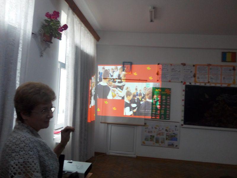 Activitateaa fost susținută de d-na prof.înv.primarEmanuela Chichioacă și a constat în prezentarea proiectul tematic „Sfârșit de toamnă” cu toate activitățile desfășurate pe parcursul lunilor de toamnă, finalizată joi printr-un frumos program artistic „Nostalgie prin vers, cântec și dans” cu elevii clasei a III-a.