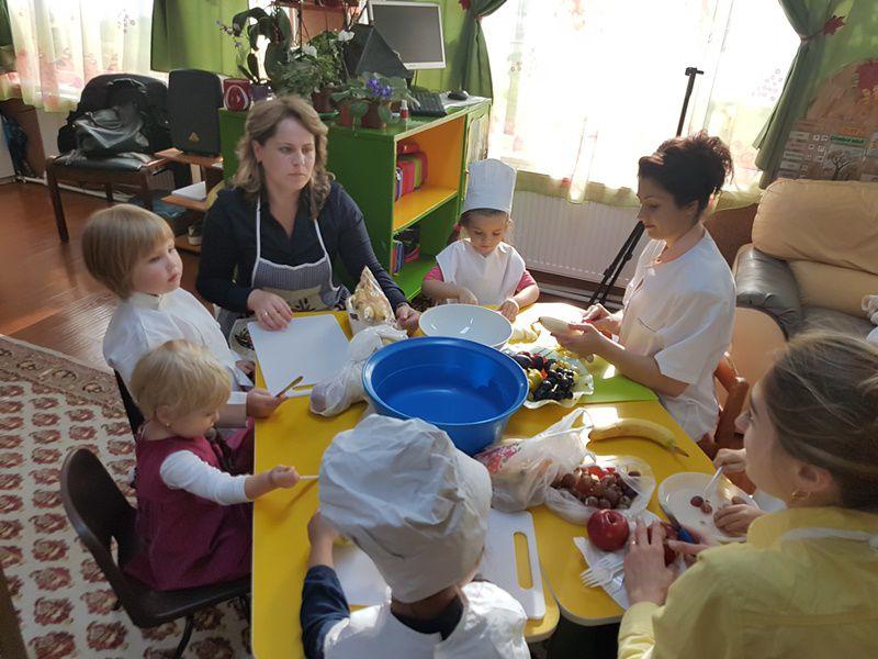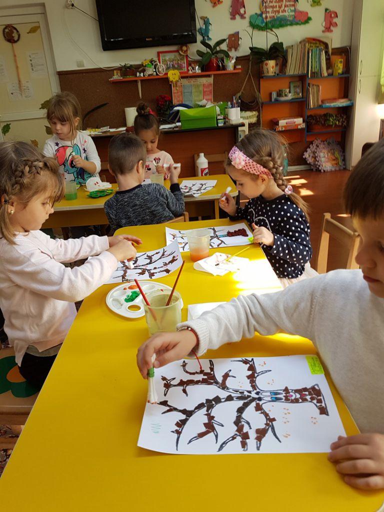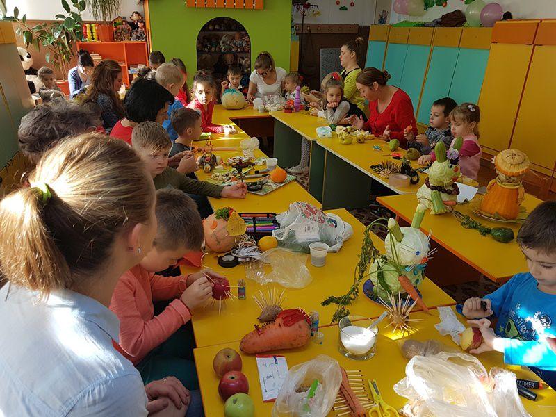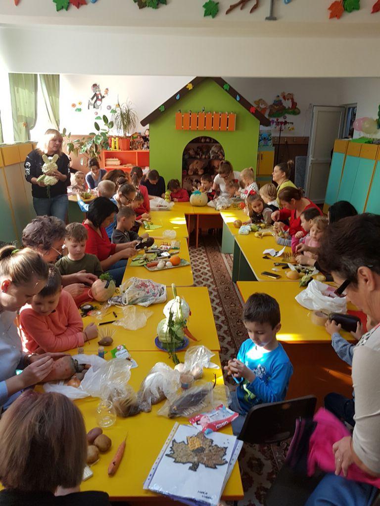 De la începutul acesteia copiii, au admirat paleta culorilor printr-o drumeție în pădurea Sendriceni, au simțit aroma fructelor de toamnă, vizitând livada din aceeași localitate sub directa îndrumare a domnului administrator Nicu Vasilică, au vizionat materiale PPT, cu imagini despre frumosul anotimp, au învățat poezii și cântece, au realizat chipul toamnei și bogățiile acestia prin creații plastice și practice. Împreună cu părinții au făcut salata de fructe, au realizat figurine hazlii din fructe si legume, au umplut coșurile Zânei, cu fructe și legume pe care le-au donat unor bătrânei din orașcu situație materială precară.