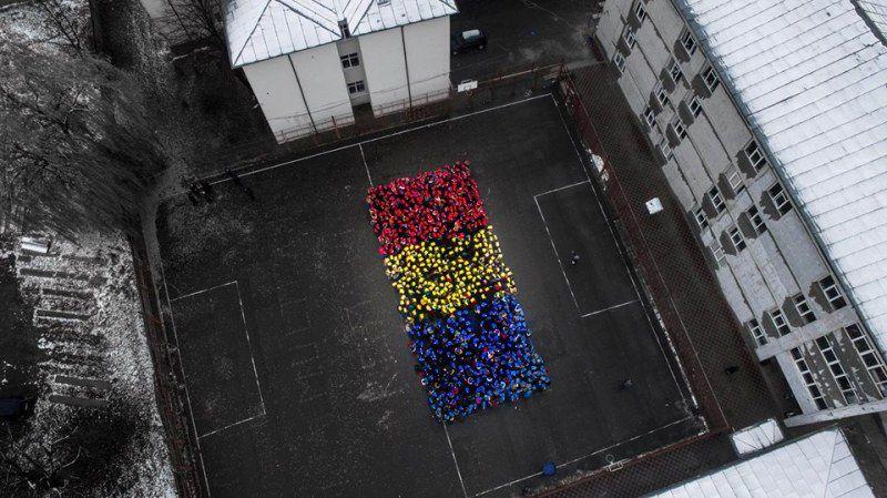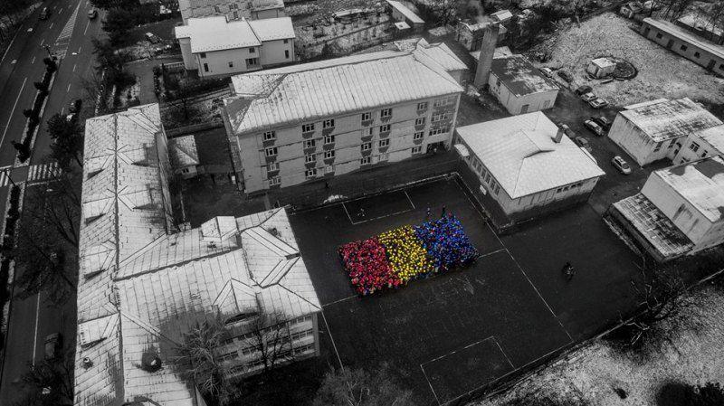 Cei peste 900 de liceeni de la Liceul „Regina Maria” au ţinut să marcheze 99 de ani de unitate naţională într-un mod inedit, formând un uriaş tricolor fotografiat din dronă.