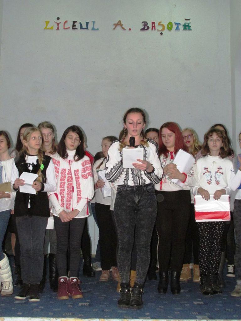 A urmat un program de cântece și poezii dedicate acestui eveniment, prin care elevii au exprimat sentimente de mândrie națională care ne-au sensibilizat pe toți cei prezenți, făcându-ne să trăim măreția acestei importante sărbători.
