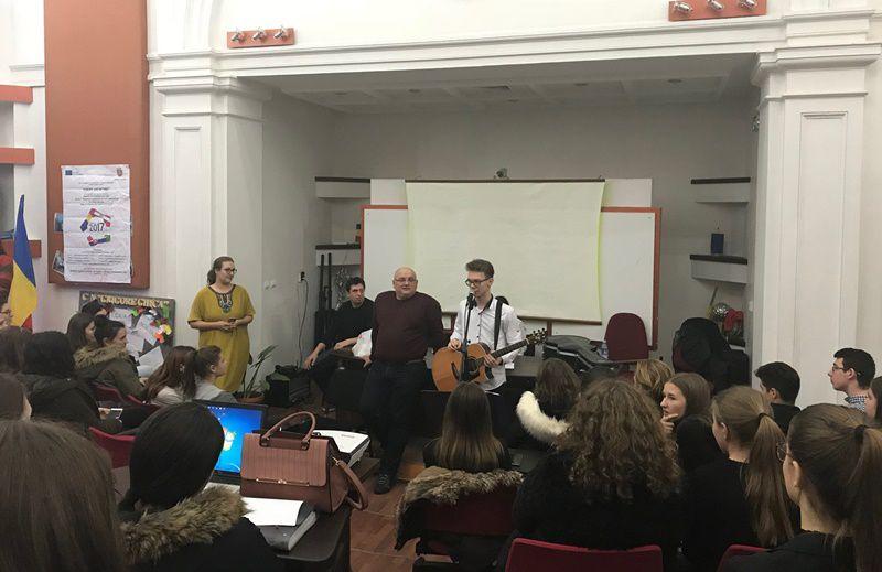 Elevii colegiului au primit poezie de suflet de la Sorin Poclitaru, iar Vasile Mardare – surpriza evenimentului, membru al neuitatului Cenaclu Flacăra – a deschis spectacolul, în spiritul sărbătorii naționale, cu „Treceți, batalioane române, Carpații”, moment în care mai mult de 100 de adolescenți au fost un singur glas, descoperind trăirea românească pe care versurile lui Adrian Păunescu o nasc în orice român. Ștafeta a fost preluată de Sebastian Ionel, elev la Liceul „Regina Maria”, a cărui participare a dovedit adevărul că muzica poate uni chiar și două școli concurente. A cântat apoi botoșăneanca Ștefania Iacob, prezență constantă a festivalurilor de folk din toată țara. Cei patru artiști au fost secondați de profesorul Liviu Ciulei, cunoscut publicului dorohoian.