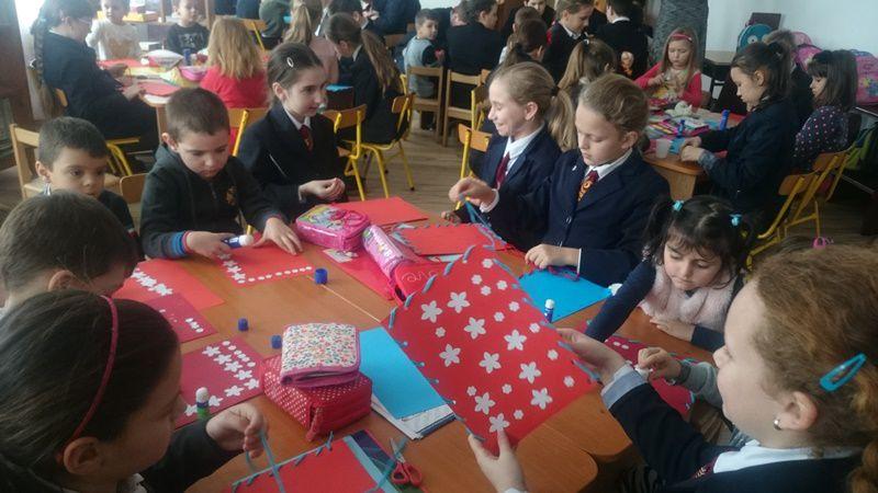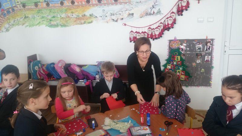 Marți, 12 decembrie 2017, copiii au primit vizita școlarilor clasei a IV-a de la Școala Gimnazială Spiru Haret , îndrumați de d-na prof. înv. școlar, Romanescu Adriana. Având învedere ca sărbătoarea Crăciunului se apropie cu pași repezi, copiii au lucrat împreună trăistuțe pentru colindat. Experiența a fost extraordinară pentru că și-au făcut noi prieteni și au putut da utilitate lucrărilor realizate.