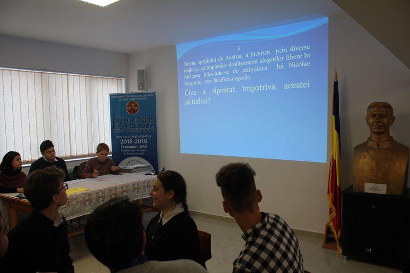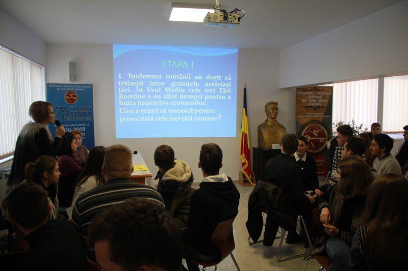 La finalul activității, la inițiativa Consiliului Școlar al Elevilor, s-a desfășurat și un concurs de istorie, la care s-au înscris 5 echipe, formate din elevii Seminarului. Aceștia au răspuns la toate întrebările pregătite, demonstrând că istoria ocupă un loc important în viața tinerilor. (Consilier educativ, Pr. Prof. Crețu Vasile Ionuț)