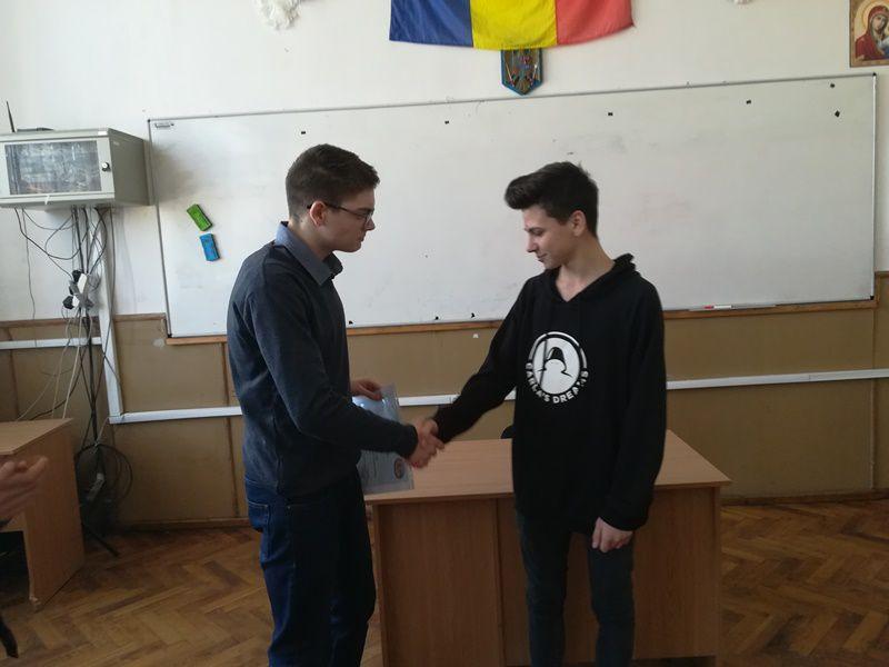 Competiția s-a desfășurat în sistem semifinala-finala mică-finala mare și a durat o oră și jumătate. La capătul acestei perioade, câștigător a fost elevul Hurmuz Emanuel, acesta trecând în semifinală de Ciubeică Abel și în finală de Ciulei Claudiu Ioan.