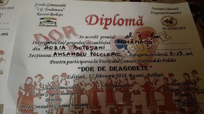 Școala Gimnazială Nr. 3 Iezer din comuna Hilișeu-Horia s-a întors victorioasă de la Festivalul - concurs național de folclor „Dor de Dragobete” de la Borlești (jud. Neamț ):