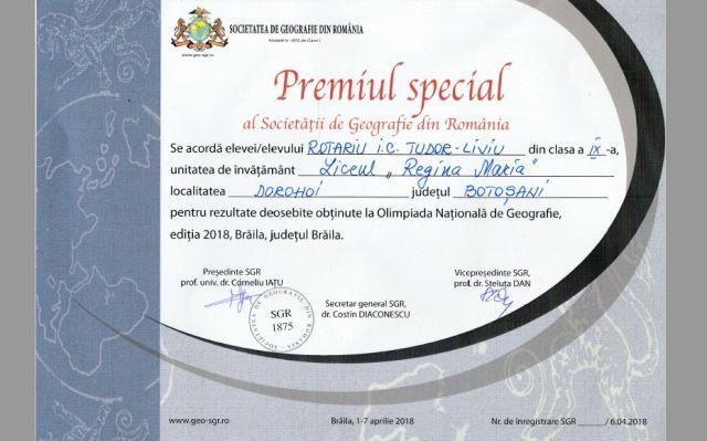 În perioada 1-6 aprilie 2018, Brăila a fost gazda Olimpiadei de Geografie. Unul dintre participanții calificați la etapa națională a fost Liviu-Tudor Rotariu, elev în clasa a IX-a, specializarea matematică-informatică, la Liceul „Regina Maria”.