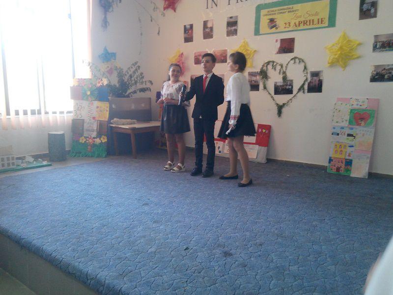 Elevii clasei a II-a, îndrumați de prof. Adina Bajureanu, au dat dovadă de mult optimism prin interpretarea melodiei ”Noi credem în viitor”, iar eleva Nerghiș Bianca a dansat și a interpretat melodia ”Ploița”. Celor de clasa a II-a li s-au alăturat elevele clasei a IV-a, aducând pe scenă dansul și cântul moldovenesc prin melodiile ”Joacă hora” și ”Jocul moldovenesc”;