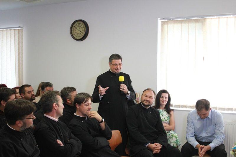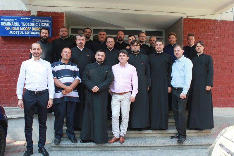 Din Toronto sau București, Rădăuți și Viișoara, Vârfu Câmpului sau Pomârla, Iași și Bârlad, cu familia sau singuri, luminați la chip, cu bărbi îngrijite, unii cu părul grizonat și nins prea devreme, în reverende sau casual, mai înalți sau scunzi, în haine de sărbătoareși cu sufletul curat, ne-am întâlnit 20 de colegi, din cele două clase care au absolvit în 1998. Și pentru a profita de frumusețea reîntâlnirii, și a rămâne în aceeași notă, imediat am început rugăciunea de mulțumire în frunte avându-l pe părintele director Constantin Muha, alături de părintele protopop Stelian Ciurciun, iar ca profesori, ne-au făcut onoare părintele Ionel Darie și părintele Petru-Georgel Chichioacă. Slujba de Te-Deum a fost de o frumusețe rară, deoarece, fiind schimbați de trecerea vremii, am simțit această slujbă în adevărul și mireasma ei veșnică, iar rugăciunea iradia din plinătatea bucuriei frățești, după cum zice și psalmistul: „Doamne, cât este de bine și cât e de frumos să locuiască (să se roage) frații împreună!” (Psalmul 132, 1).