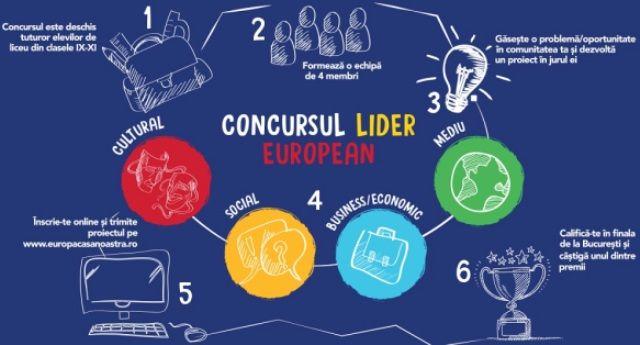 Concursul Lider European face parte din campania educațională "Europa, casa noastră”. Competiția își propune să dezvolte abilitățile de leadership și de vorbire în public ale elevilor, spiritul de echipă și capacitatea de a mobiliza grupuri de oameni pentru a lucra împreună în beneficiul propriei comunități. Obiectivul concursului este de a promova valorile Uniunii Europene în rândul tinerilor, în contextul activităților legate de valorile și temele europene. Concursul se concentrează pe dezvoltarea de proiecte în oricare dintre domeniile social, cultural, afaceri/ economic și de mediu.