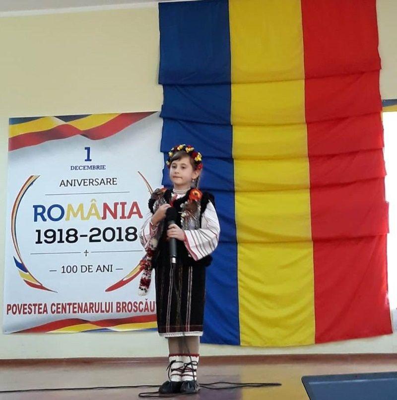 Eleva Ciubotariu Delia din clasa pregătitoare a demonstrat audienței că patriotismul nu are vârstă. A urmat Vlad Apostol, un fost elev al școlii care a interpretat două melodii la trompetă.