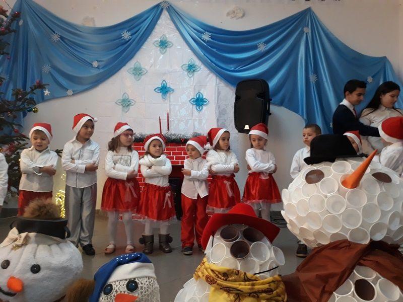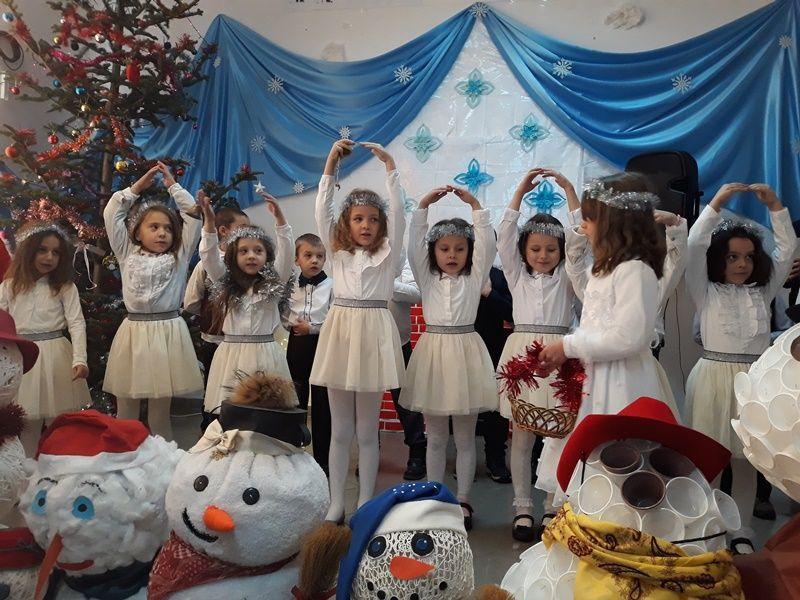 Elevii din Clasa Pregătitoare, coordonați de prof. Suzana Blazincu, au adus fulgii de nea pe scenă prin frumosul dans pregătit de aceștia, numit ”Dansul fulgilor de nea”;