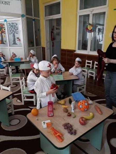 Proba practică – jocul „Ghicește ce este si la ce foloseste?” (fiecare membru al echipajului, cu ochii acoperiți, trebuie să identifice obiectul selectat: fructe, legume, obiecte de igienă personală și vestimentară, obiecte pentru dezvoltare fizică armonioasă etc. și să motiveze utilitatea/ importanța acestuia).
