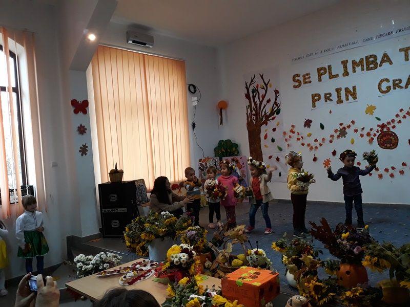 -Preșcolarii din grupa ”Fluturașii”, coordonați de educ. Dalia Ionescu, au pregătit cu mult drag melodia ”Cade frunza”;