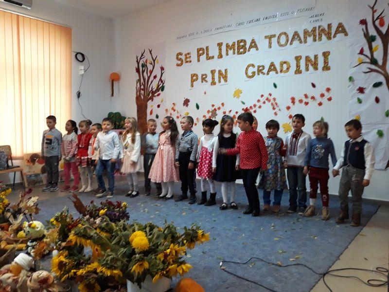 -Elevii clasei a II-a, îndrumați de prof. Diana Andrei, au invitat publicul să pășească în fabuloasa lume creată de acest anotimp, îndemnând la visare, la cugetare și transmițând o stare de melancolie și liniște sufletească prin intermediul cântecului ”Toamna de aur” și al unui ”Vals al toamnei”;