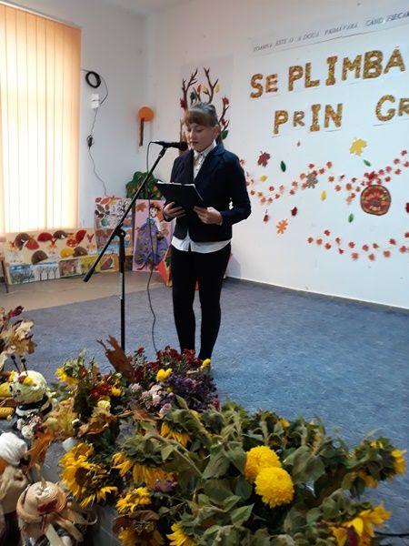 -Eleva Iftime Alexandra din clasa a VII-a, a prezentat o scurtă compunere despre frumusețea anotimpului toamna, fiind urmată de colegele ei din clasele a VII-a și a VIII-a, care au pregătit un frumos dans etno. Ele au fost îndrumate în crearea momentelor de prof. Simona Herghiligiu.