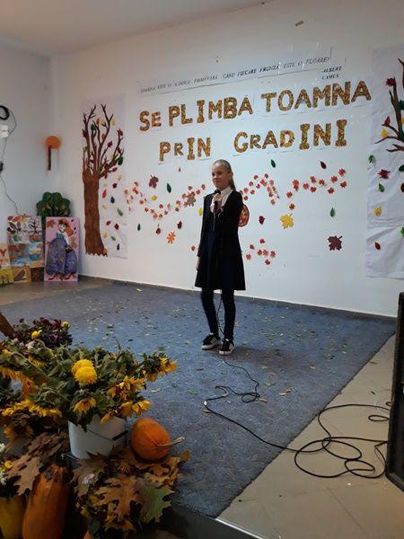 -Elevii clasei a III-a, coordonați de prof. Camelia Olaru, au recitat poezia ”Toamna în parc a lui George Topîrceanu, încântând publicul la fel de mult precum o făcea binecunoscutul scriitor la șezătorile literare la care participa;