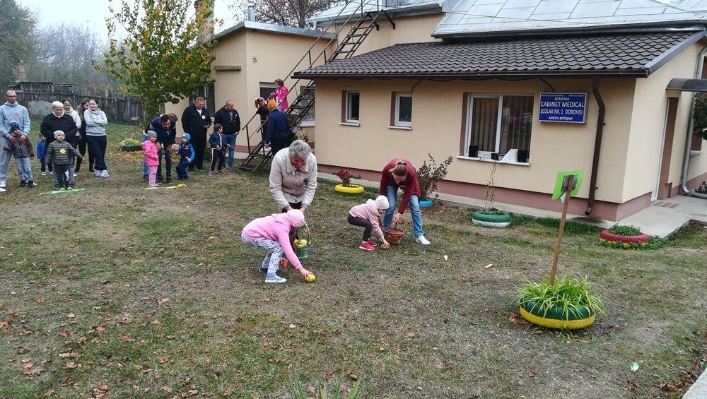 Plecarea toamnei a fost sărbătorită și de preşcolariidin grupa mare „Fluturaşii”, îndrumați de doamnele prof. Florentina Grigoraș și Simona Pojogaşi părinţii acestora în cadrul activităţii „Sărbătoarea dovleacului”. Activitatea s-a desfășurat în aer liber, sub forma unui concurs, în care copiii împreună cu părinții lor s-au întrecut în mai multe probe: „Rostogolirea dovleacului”, „Fructele și legumele la start”, „Aruncă la țintă”, „Culegătorii la concurs” și „Supa de legume”.
