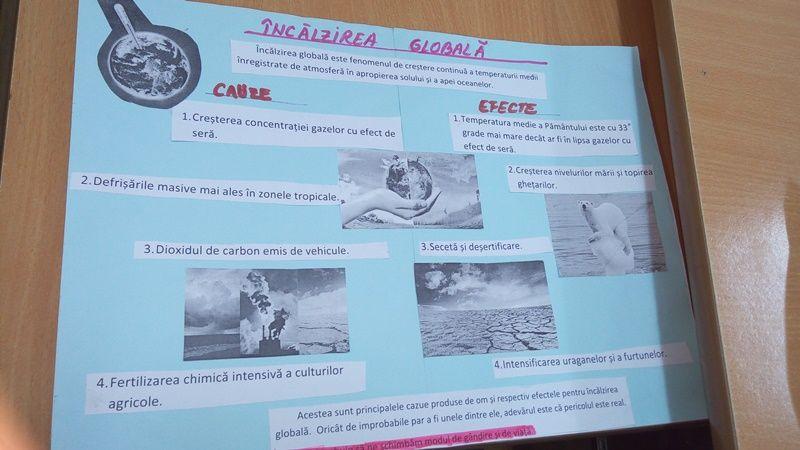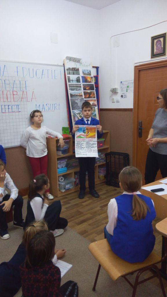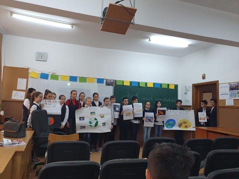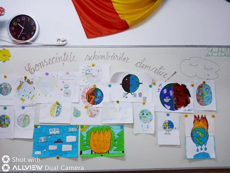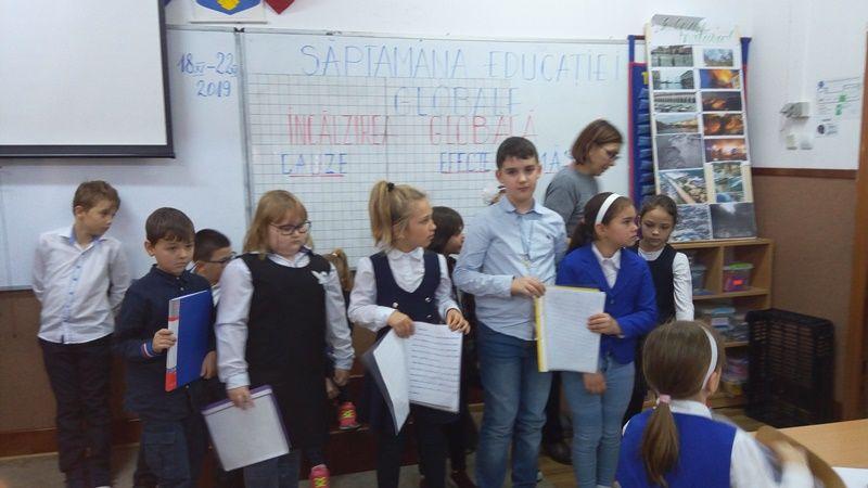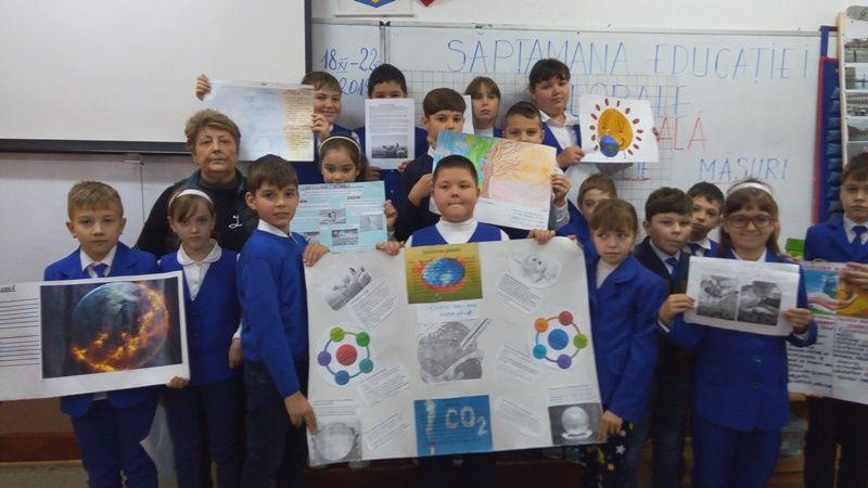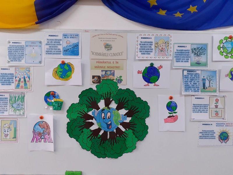 Cea de-a XXI-a ediție a Săptămânii Educației Globale, program facilitat de Consiliul Europei, desfășurată în perioada 18 – 24 noiembrie 2019, având ca temă ,,SCHIMBĂRILE CLIMATICE” a condus la proiectarea și derularea unor activități variate la nivelul unității școlare, activități reunite în cadrul proiectului educațional „LUMEA DE MÂINE SUB SEMNUL SCHIMBĂRILOR CLIMATICE!”. Prin proiectele educative derulate, elevii, profesorii și invitații acestora au dorit să semnaleze problemele cu care se confruntă în momentul de față societatea omenească sub aspectul schimbărilor climatice și să tragă un semnal de alarmă, indicând în același timp, modalitățile de acțiune în vederea construirii unui viitor sustenabil. În acest sens ei au elaborat pliante, au editat broșuri, au construit postere, machete din materiale reciclabile, au realizat desene.