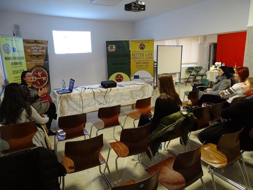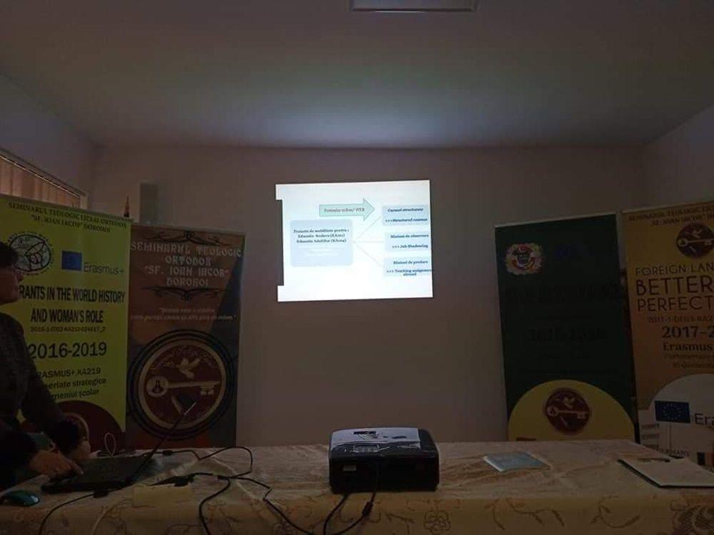 În cea de-a doua parte a zilei, dna. prof. Gianina Butescu a prezentat modul în care sunt implementate Proiectele Europene Erasmus+ și Etwinning la Seminarul Teologic Liceal Ortodox „Sf. Ioan Iacob” Dorohoi.