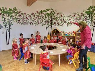 Pentru a stimula copiii, din punct de vedere intelectual, și pentru a-i ajuta să-și dezvolte imaginația, cărțile noi și atractive sunt citite cu voce tare, iar povestea cu aplicație asupra vieții copiilor este apoi discutată în grup.