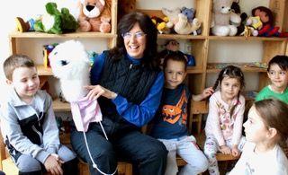 Profesor voluntar de limba engleză oferă ore copiilor în toate grupele de grădiniță. Fiecare copil învață limba engleză prin activități creative, precum jocuri și cântece.