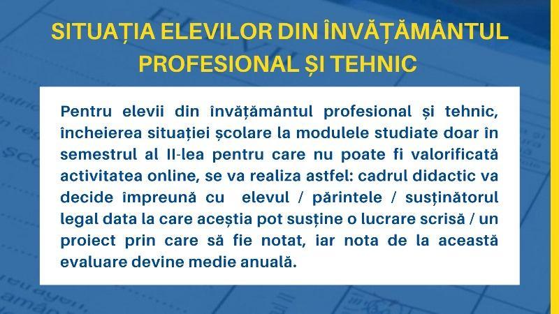 Situaţia elevilor din învăţământul profesional şi tehnic