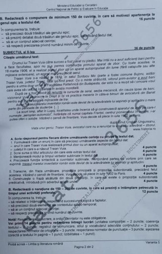 La Subiectul I B, absolvenții de gimnaziu au avut de făcut o compunere de minimum 150 de cuvinte, în care să motiveze apartenența la genul epic a textului avut la primul punct.