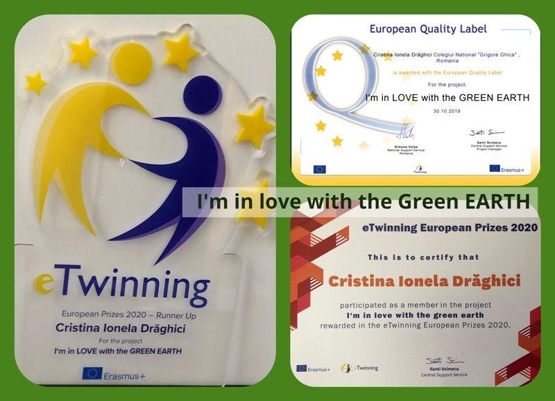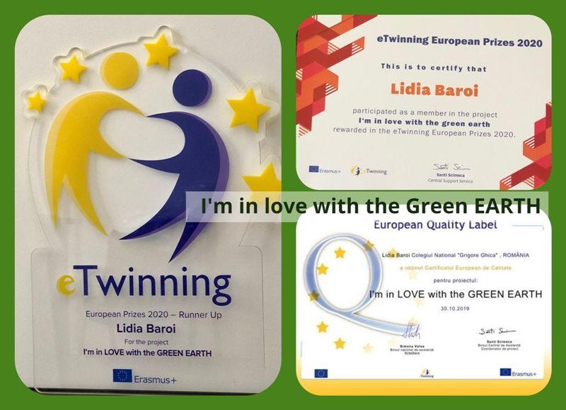 Proiectul eTwinning „I’m in lovewiththe GREEN EARTH” a obținut premiul al doilea la categoria de vârstă 12-15 ani, în cadrul ediției 2020 a premiilor eTwinning europene, în competiție fiind înscrise 932 de proiecte.
