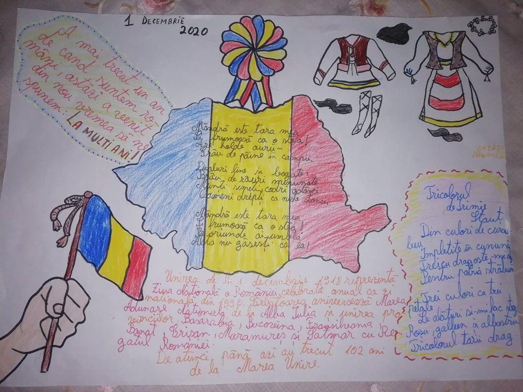 Da, România este cu adevărat un colț de rai pentru că este patria, este pământul strămoșesc, pentru care s-au luptat și s-au jertfit înaintașii. De aceea trebuie să fim mândri și să le cinstim memoria, să luptăm în continuare pentru a păstra țara curată, liberă și mai ales unită „în cuget și simțiri” Și totuși, astăzi, când trăim momente atât de dificile, există elevi care, deși colaborează din punct de vedere didactic în mediul online, reușesc să realizeze activităti dedicate unor evenimente istorice și nu numai.