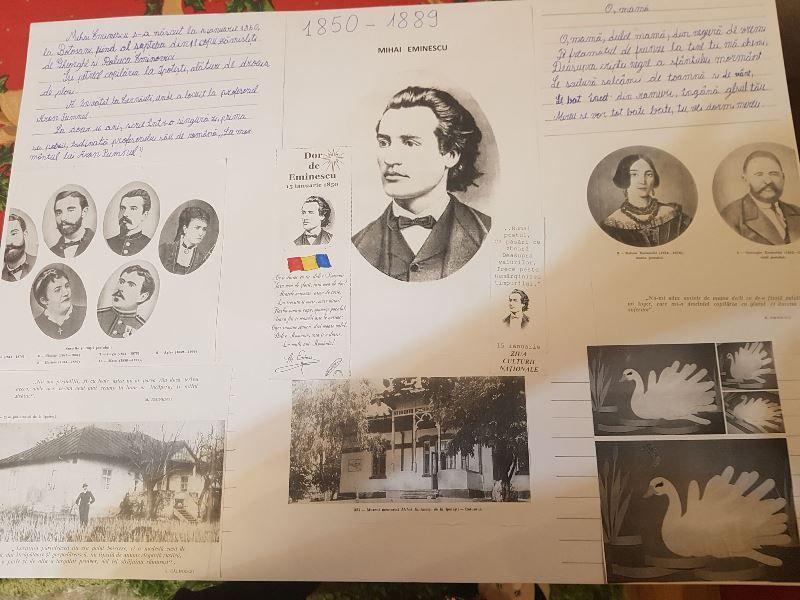 Cu toate că au desfășurat aceste activități de la distanță, fiecare elev la căsuța lui, au reușit, cu succes, spunem noi, să marcheze, cu emoții și mândrie în același timp, nașterea marelui poet național. Astfel elevii au realizat proiecte despre viața, activitatea și poeziile poetului, i-au redat chipul realizând desene ce-ți trezesc emoții când le privești, au recitat poeziile Floare Albastră, Ce-ți doresc eu ție dulce Românie, Mai am un singur dor, Steaua, Luceafărul, La mijloc de codru, Trecut-au anii, Adio, O, mamă, dulce mamă.