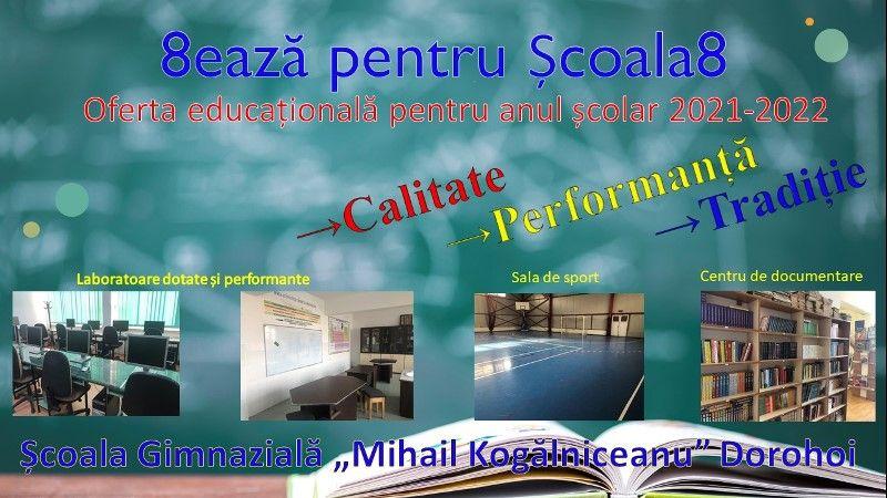 Mai multe detalii despre școala noastră puteți găsi pe site-ul școlii, accesând link-ul „ http://www.scoala8dorohoi.ro/anunturi/oferta-educationala-an-colar-2021-2022--261.html ”