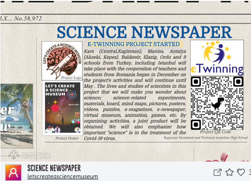 Elevii CNGG sunt aproape de finalizarea proiectului eTwinning „Să creăm un muzeu al științei” desfășurat în anul școlar 2020-2021.