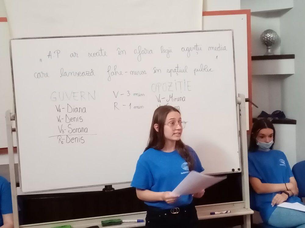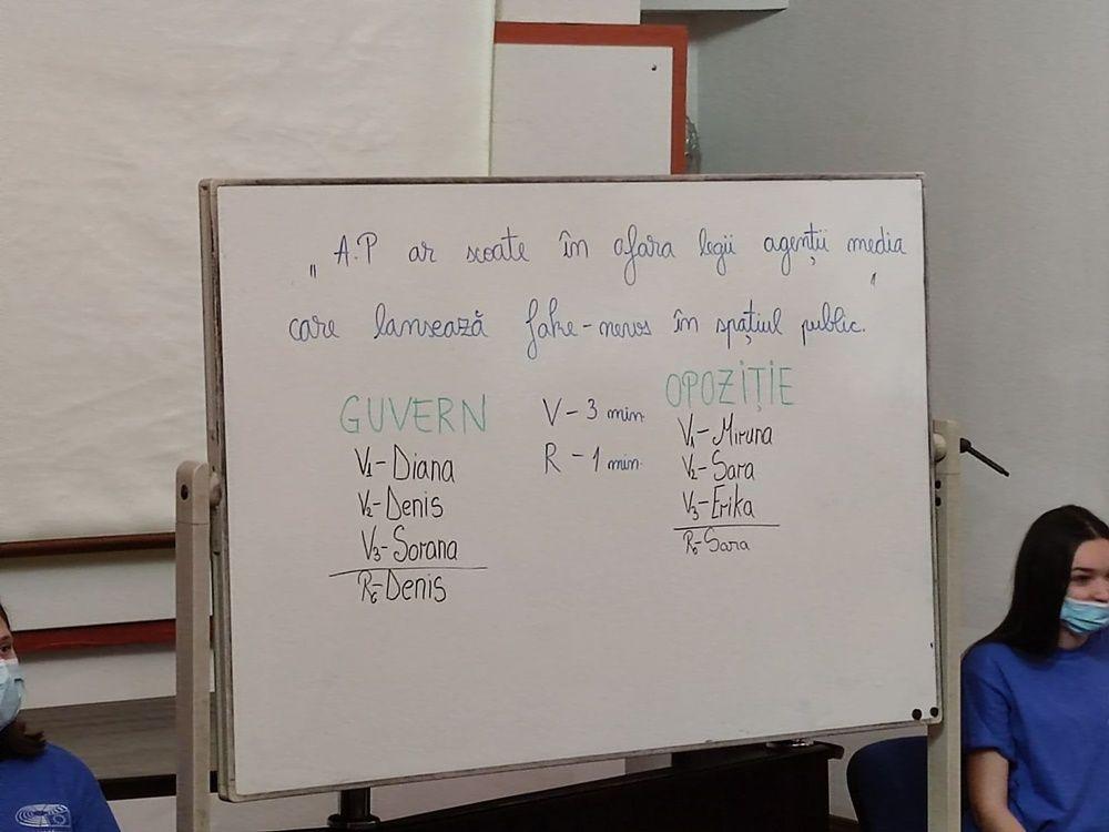 În cadrul Programului EPAS – „Școli Ambasador ale Parlamentului European“ s-a dezbătut moțiunea „AP. ar scoate în afara legii agenții media care lansează fake-news în spațiul public.” Echipa Afirmatoare (Guvernul) a fost alcătuită din elevii Murariu Diana-Elena, Bighiu Denis-Gabriel și Ciulei Sorana-Ioana iar echipa Negatoare din elevii Viziteu Miruna-Alexandra, Pintilei Sara și Buliga Erika-Gabriela (Opoziție).