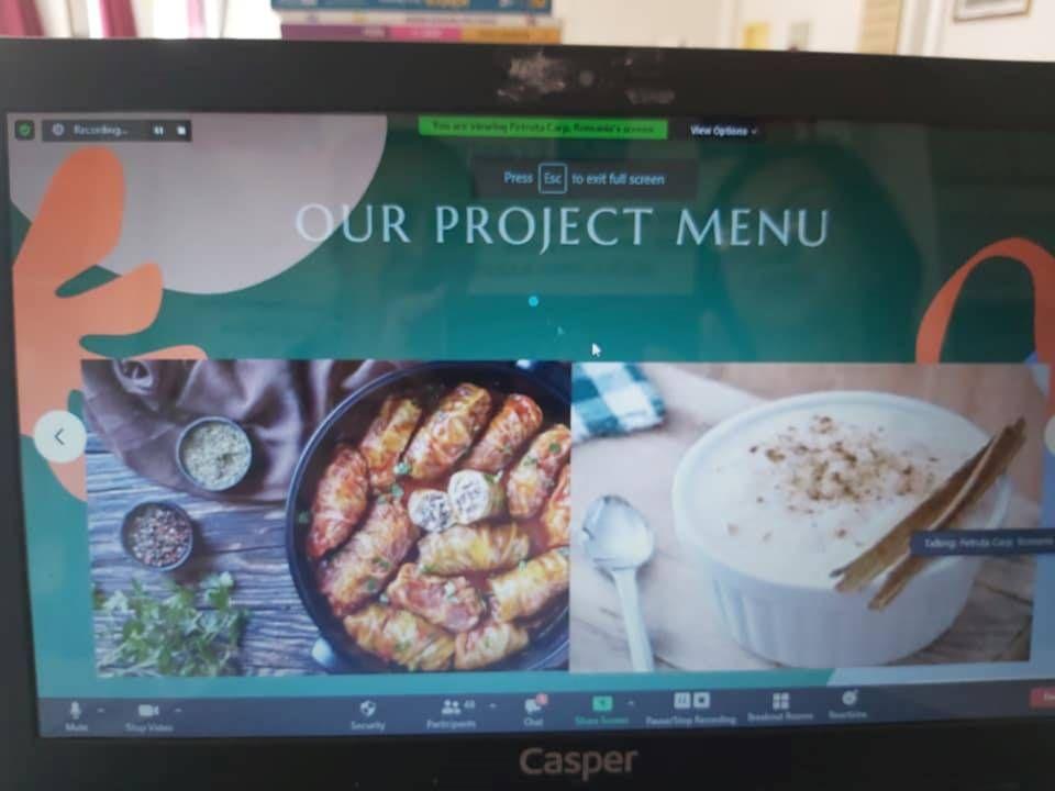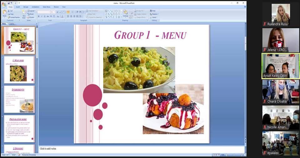 Având ca temă mâncarea tradițională, cele 5 zile de activități organizate în mod virtual de liceul Derici Mustafa Gurbuz Anadolu Lisesi, Kusadasi, Turcia, au favorizat descoperirea și promovarea de către elevi a bucătăriei tradiționale și modern specifice fiecărei țări partenere. În cadrul activităților de grup, elevii au descoperit elemente comune, dar și diferite, de cultură gastronomică, au prezentat filmulețe cu ei gătind trei feluri de mâncare specifice zonei în care trăiesc și au comunicat pentru a alcătui un meniu al proiectului care să cuprindă feluri de mîncare specifice fiecărei țări partenere.