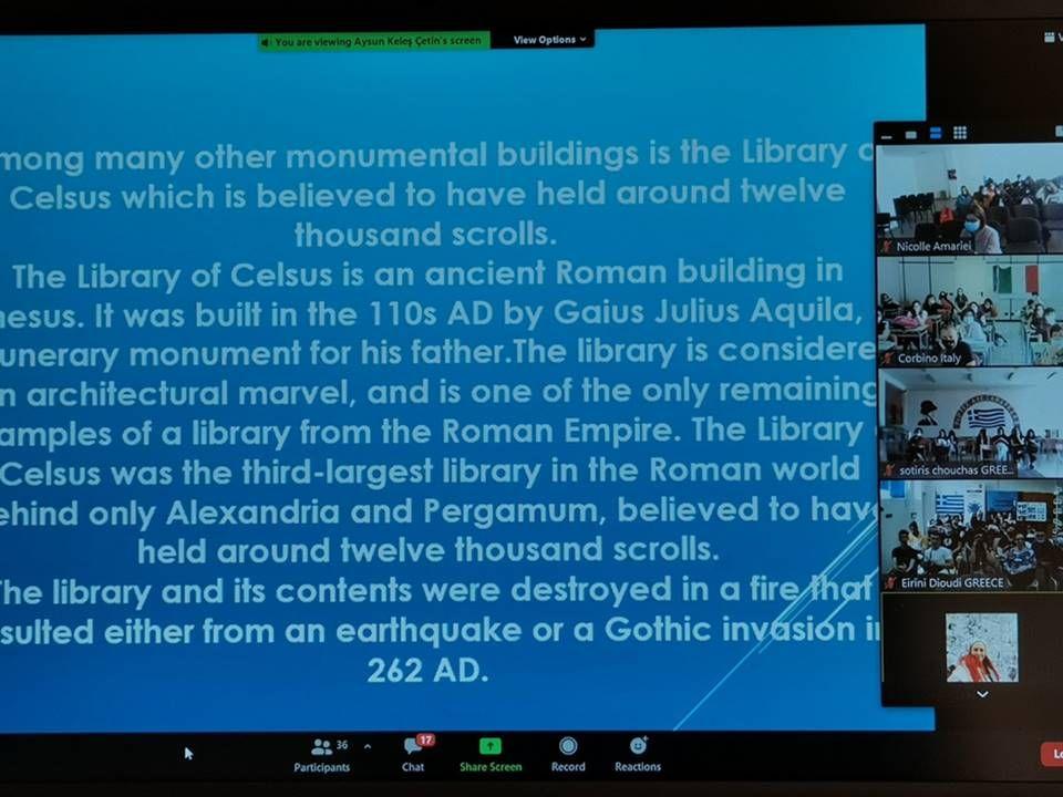 Școala gazdă a favorizat cunoașterea patrimoniului cultural turc, obiectivul principal al proiectului, prin vizite virtuale în locuri precum Kusadasi, Pamukale, Ephesus, Virgin Mary, The 7 sleepers, Didyma.