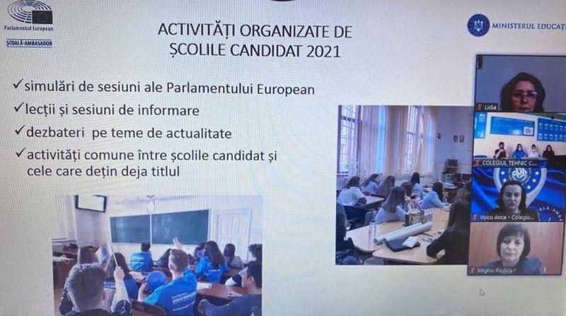 În urma evaluării activităților implementate în perioada martie-mai 2021, Colegiul Naţional “Grigore Ghica” a primit premiul de “Şcoală-Ambasador a Parlamentului European” (EPAS) joi, 17 iunie 2021, în cadrul unei ceremonii online la care au participat doamna Marinica Stoian, inspector general - Ministerul Educației; doamna Carmen Gâlie, coordonator EPAS - Biroul de Legătură al Parlamentului European; doamna profesor Mighiu Rodica, inspector școlar pentru proiecte educaționale; directorii, coordonatorii și ambasadorii juniori din cele zece licee candidat.
