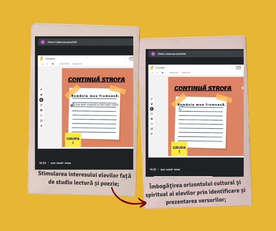 Inventivitatea și spiritul de echipă ale elevilor au fost antrenate în două competiții, menite să stimuleze simțul civic și interesul pentru păstrarea identității naționale. Fiecare grupă de elevi a avut ocazia să transmită prin poezie, un mesaj artistic, încununat de valorile noastre reprezentative morale, istorice și estetice. De real interes a fost și desfășurarea concursului de cultură generală, în care aceștia au avut șansa de a-și pune în valoare propriile cunoștințe istorice despre Unirea din 1918, grupa câștigătoare urmând să fie premiată cu un cadou surpriză.