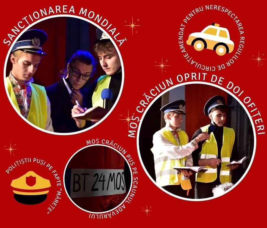 Pentru a dinamiza ambianța, invitații au fost părtași la o transpunere „mai altfel” a cunoscutei povești a „Cenușăresei”. În gama pieselor de teatru s-a regăsit și fascinanta poveste a nordului - Fetiţa cu chibrituri”, după Hans-Christian Andersen. Piesa a redat, prin gesturi, pantomimă şi expresie, imagini colorate, aventurile grupului de copii format în jurul sărmanei Christine. Dezvăluind simbolurile pure ale Crăciunului, sceneta „Sancționarea Mondială” a ilustrat amendarea celui mai iubit și mai așteptat om din luna decembrie  pentru nerespectarea regulilor de circulație. Actul teatral a completat linia strategică pe care și-au asumat-o a fi prioritară și, anume: râsete și ropote de aplauze din belșug.