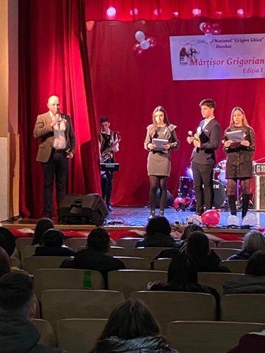 Cu sufletele pline de emoție, membrii Consiliului Școlar al Elevilor de la Colegiul Național “Grigore Ghica” Dorohoi, Miruna Viziteu, Andreea Ungureanu, Alexia Julinschi și Sorana Ciulei, îndrumați de profesorii Monica Ifrim și Carmen Agrăpinei, s-au alăturat activităților de ajutorare a persoanelor refugiate din Ucraina, un loc în care acum aripile păcii sunt frânte, prin organizarea spectacolului umanitar "Mărțișor Grigorian" pe data de 8 martie 2022, la Sala Teatrului.